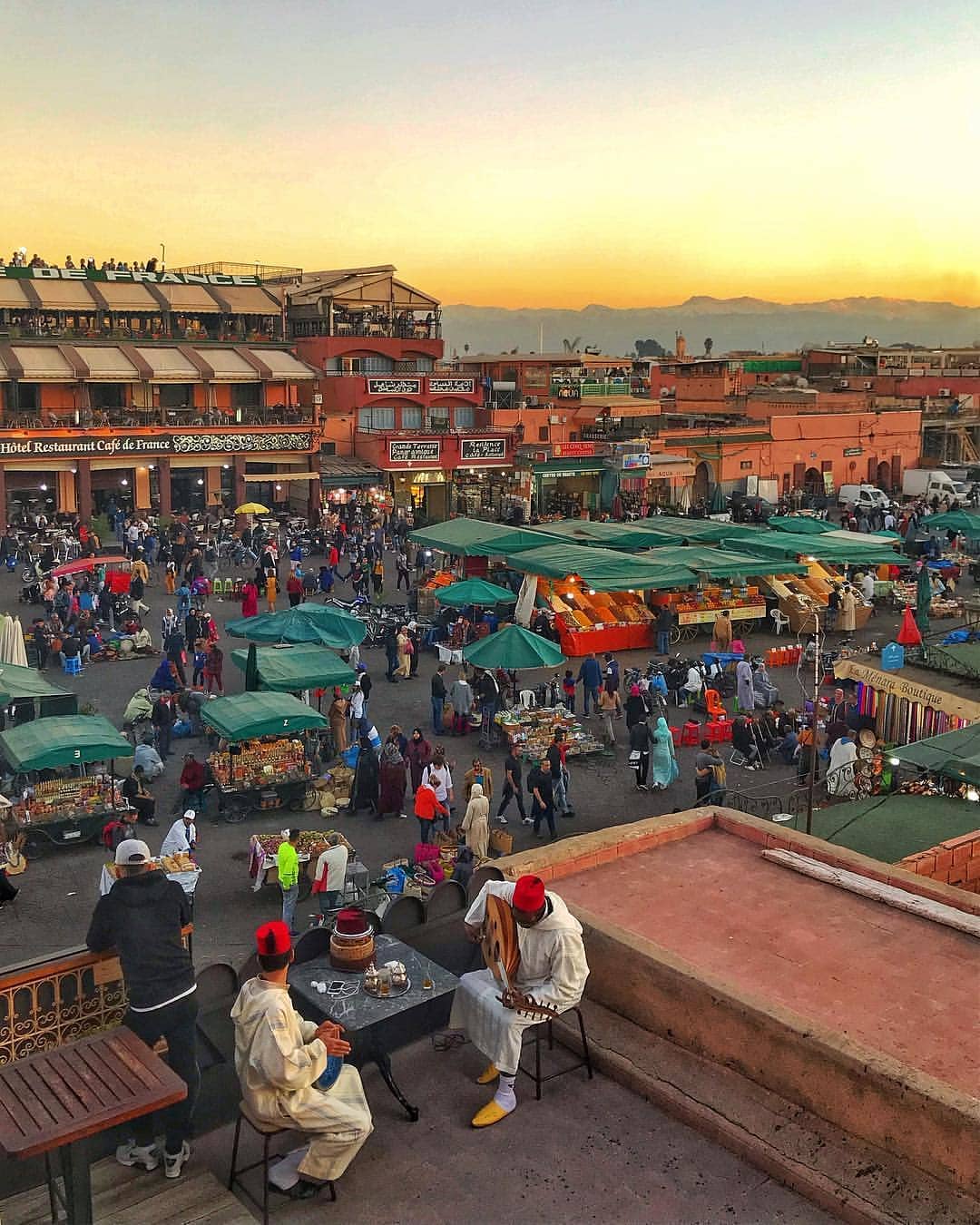 Closing day at Jemaa el-Fna Square where dancing, storytelling and live snake charming are performed into the night. Before going to the riad for the night, review your Moroccan experience to date.